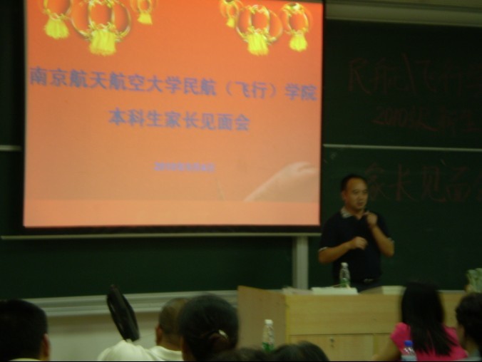 金秋九月,凉风送爽,又一届学子走进了南京航空航天大学民航/飞行学院。随着迎新工作的圆满落幕,如何让新生能更快更好地适应大学生活已经成为蜜桃视频 学生工作的重中之重。为此,蜜桃视频 于9月4日晚,在6103教室召开了家长见面会。与会人员有院党委副书记刘建成,10级交通运输专业辅导员夏昌青,10级飞行技术专业辅导员李鹏,以及众多新生家长。