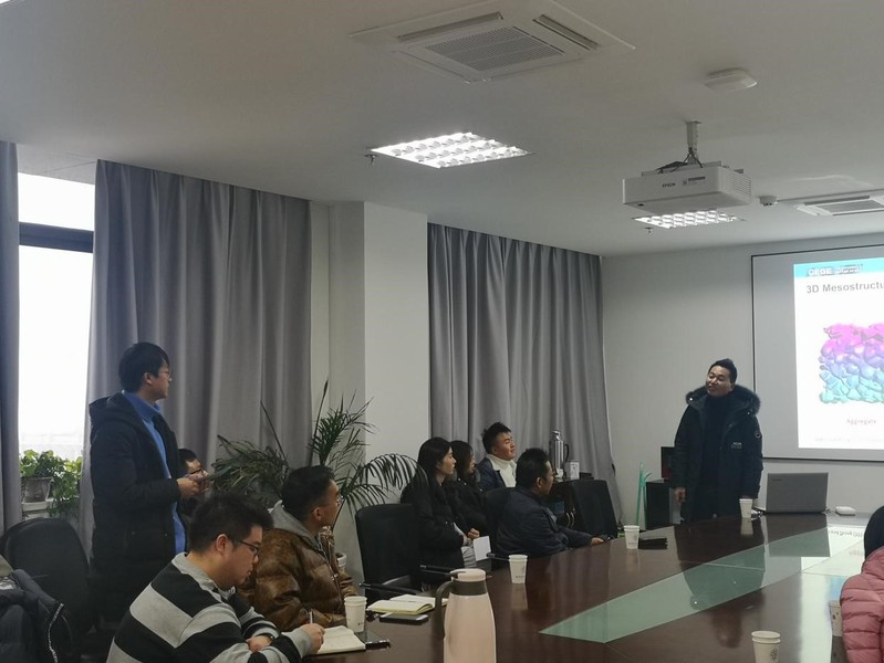 张明中副教授在简要介绍了伦敦大学学院及其课题组成员和研究方向、科研项目背景之后,就多尺度条件下水泥基材料的微结构模拟,重点介绍了从硬化水泥浆体到混凝土在X射线CT下的3D微观和细观结构,建立了包含增强纤维的混凝土细观力学模型。张教授在讲述多尺度下水泥基材料与耐久性相关的离子传输行为时,主要介绍了通过HYMOSTRUC3D软件模拟和X射线CT扫描这两种方法获得水泥基材料微观结构的成果,并进行离子传输性能的多尺度研究、初始和平衡的水分分布、非饱和水泥浆体的渗透性及氯离子扩散的微细观模拟。此外,张教授比较了碱激发混凝土和普通混凝土,重点报告了碱激发粉煤灰矿渣混凝土(AAFS Concrete)的可加工性、凝结时间、抗压强度、劈裂抗拉强度、抗弯强度、最佳配合比、反应机理及其界面过渡区的微观结构与背散射表征方法。最后,张教授展示了应变硬化地聚合物复合材料的单轴拉伸行为与多缝开裂机理。张教授介绍的水泥基材料微结构多尺度研究方法为混凝土结构耐久性评价和服役寿命预测提供了新的思路。
