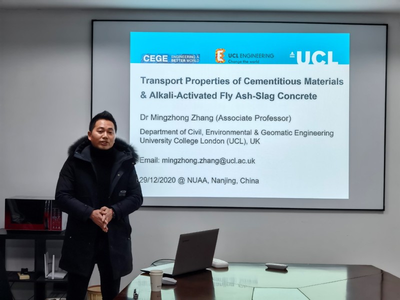 2020年12月29日下午,伦敦大学学院(UCL)土木工程系博士生导师张明中副教授应蜜桃视频 土木与机场工程系余红发教授邀请,在我校将军路校区A08号楼10楼1001会议室做了题为“Transport Properties of Cementitious Materials & Alkali-Activated Fly Ash-Slag Concrete”的学术报告。来自河海大学港口海岸与近海工程学院、南京航空航天大学蜜桃视频 等师生代表共计30余人参加了报告会。报告会由蜜桃视频 土木与机场工程系副主任柳锦春教授主持,蜜桃视频 土木与机场工程系余红发教授等老师参加了本次报告会。