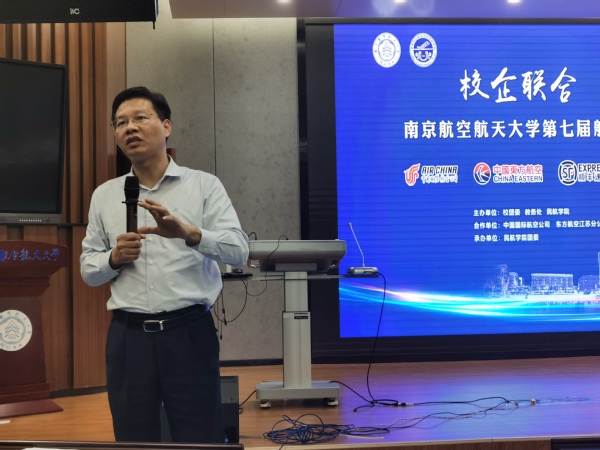 5月27日晚,南京航空航天大学第七届航空公司运营与管理大赛决赛在天目湖校区巡天楼一楼报告厅举行。春秋航空股份有限公司副总裁黄兴稳、春秋航空股份有限公司人力资源部总经理助理肖飞,东航江苏有限公司人力资源部干部监督分部主管杜双,顺丰航空股份有限公司IT研发中心数据与算法组负责人黄林,吉祥航空股份有限公司运力网络部经理孔彪、吉祥航空股份有限公司人力资源部高级经理韩欣荣,学院副院长吴薇薇以及运输系全体老师共同莅临大赛现场指导。