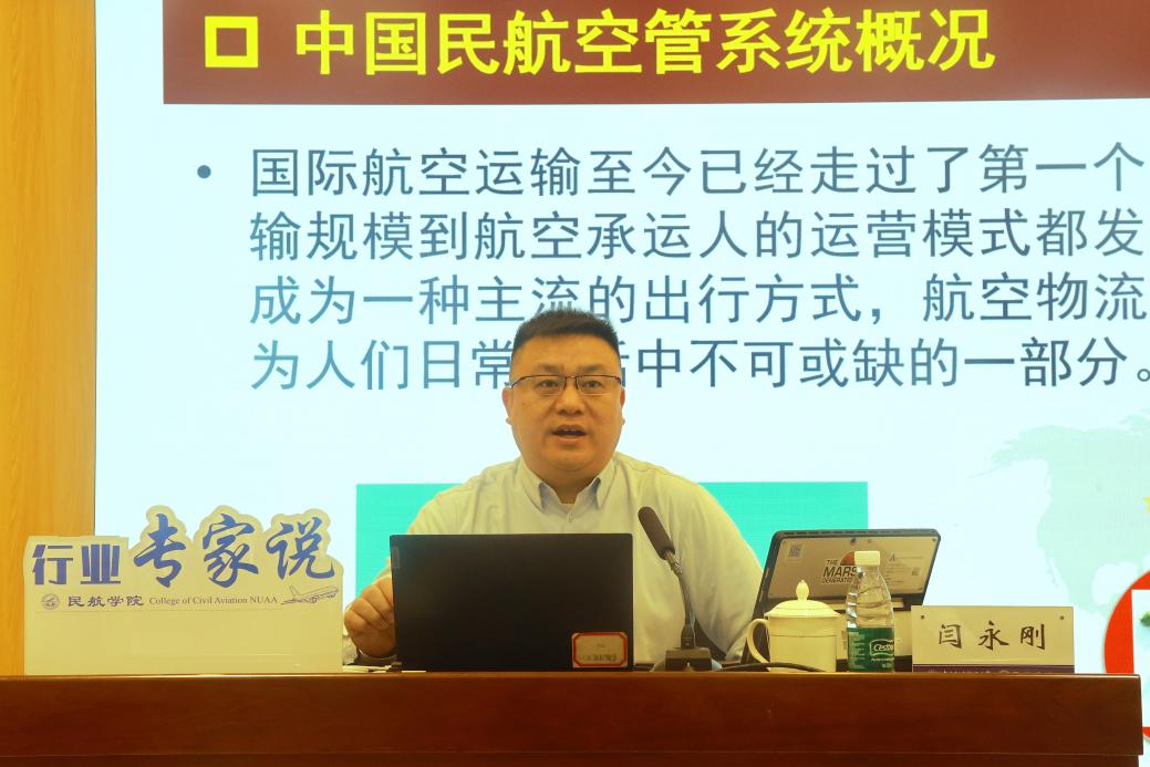 交流会后,闫永刚以“新时期中国民航空管面临的挑战与机遇”为题,开展了信仰公开课暨“行业专家说”讲座。讲座由唐志文主持,180余名学生共同参与。闫永刚系统介绍了国际民航组织架构及中国民航三级管理体系,深入剖析了军民航融合、空域供给侧改革、安全效率平衡、无人机融合运行、人员资质提升等关键领域的挑战与机遇;通过详实的数据和生动的案例,展现了空管行业在复杂环境中的发展动态与未来趋势,激发师生对行业的深入思考与浓厚兴趣。互动环节中,闫永刚与同学们亲切交流,勉励大家将个人理想融入国家民航事业发展,积极投身从“民航大国”迈向“民航强国”的伟大进程。