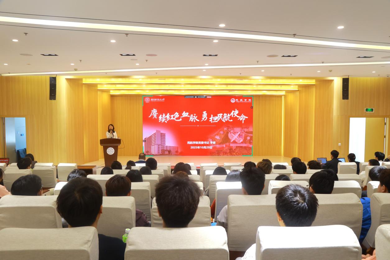 10月29日,蜜桃视频 党委书记李君以《赓续红色血脉 勇担民航使命》为题讲授党课。她由哪吒从魔童到英雄的蜕变引入,通过讲述党史、校史、民航史中鲜活的故事串联起红色基因的传承脉络,勉励同学们既要以“我命由我不由天”的志气铸就信仰之魂、以“若命运不公,就和它斗到底”的锐气勇担时代之责,以“你是谁,只有你自己说了算”的底气坚守初心使命,在党史、校史、民航史中汲取奋进力量,真正将个人理想融入交通强国民航新篇章建设,以“功成必定有我”的担当,努力成长为“有理想、敢担当、能吃苦、肯奋斗”的新时代民航青年。