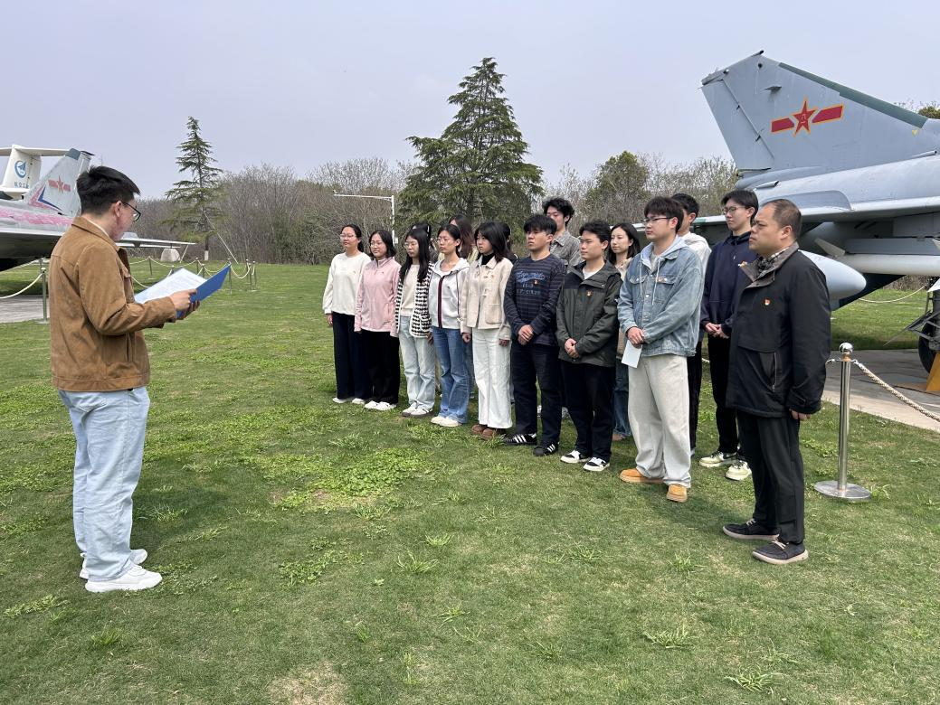 为传承航空英烈精神,强化学生党员党性修养,4月1日,蜜桃视频 2023级本科生党支部在御风园歼-8Ⅱ战机前举行“缅怀先烈砺初心 传承使命勇担当”主题党日活动。